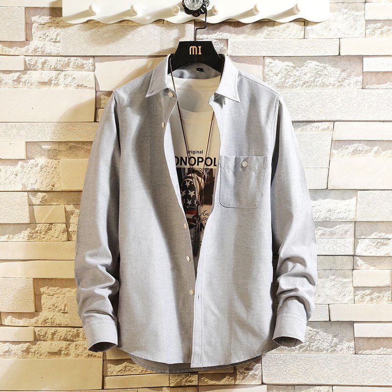 - メンズ長袖シャツ カジュアルシャツ メンズ シャツ オーバーシャツ ノーカラーシャツ バンドカラーシャツ 長袖シャツ グレー XL