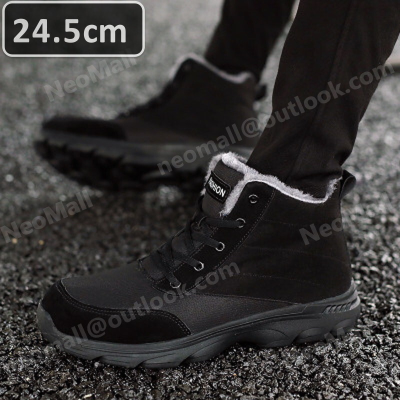 > メンズ ブーツ 【962】 24.5cm ブラック ムートンブーツ スニーカー ウィンターブーツ 裏起毛 防水 防寒 防滑 冬用靴 綿靴