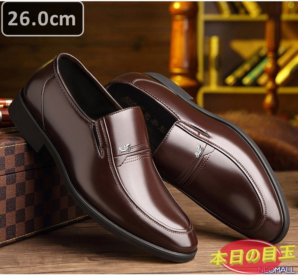 - 本日の目玉 ☆ メンズ ビジネス レザー シューズ ブラウン サイズ 26.0cm 革靴 靴 カジュアル 屈曲性 通勤 軽量 【438】