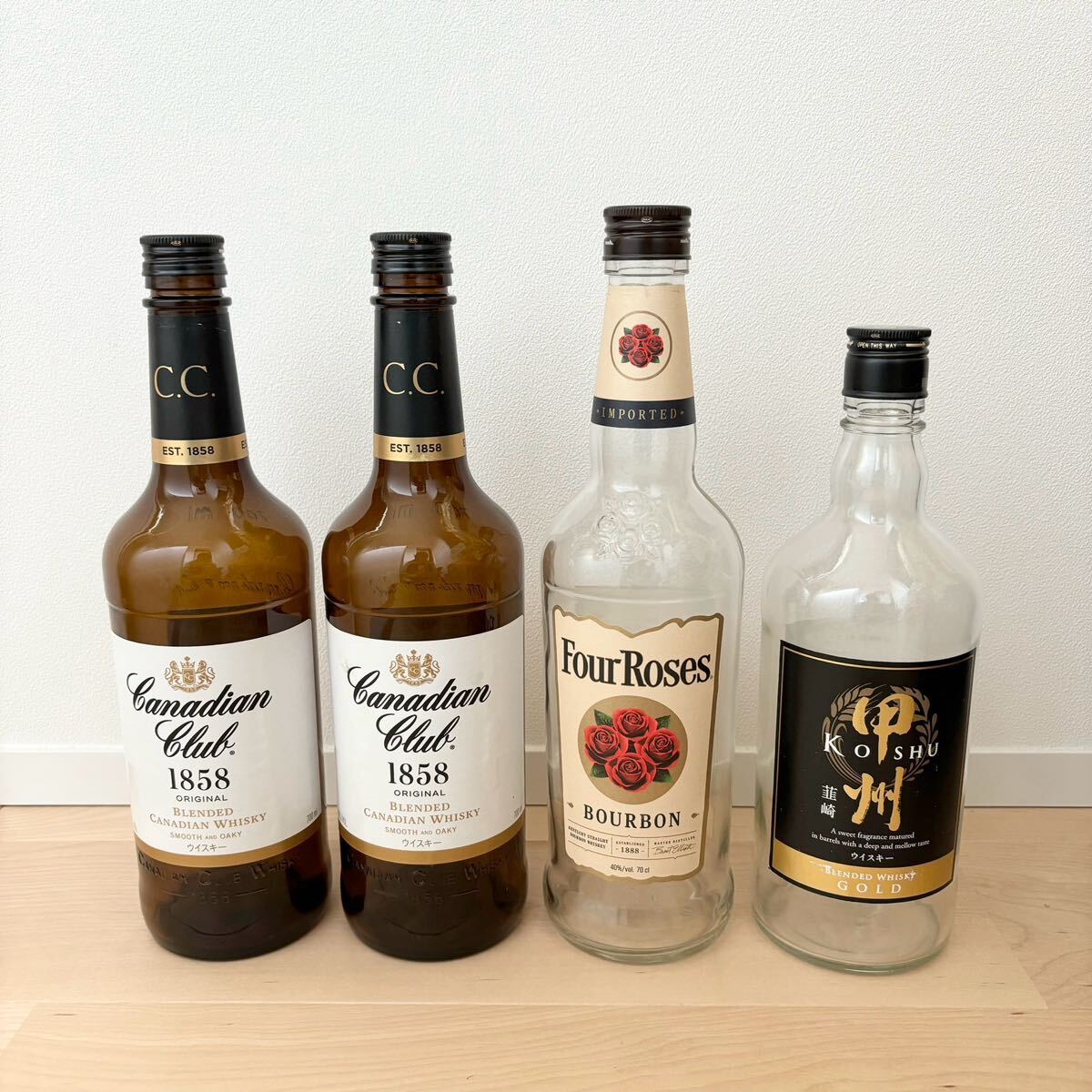 - 透明空瓶 ウイスキー ボトル 酒瓶 ブラウン ガラス瓶 空き瓶 SUNTORY サントリー カナディアンクラブ1858オリジナル 甲州韮崎ゴールド
