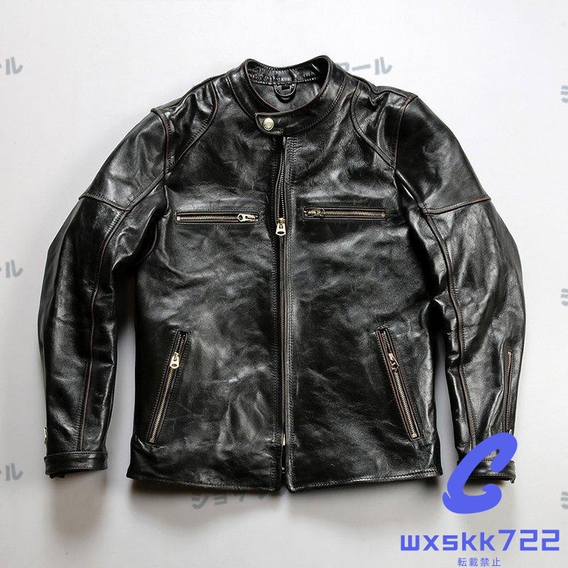 - 茶芯 馬革 レザージャケット シングルライダース 革ジャン 本革 機関車 メンズファッション ホースハイド バイクレザー S~5X