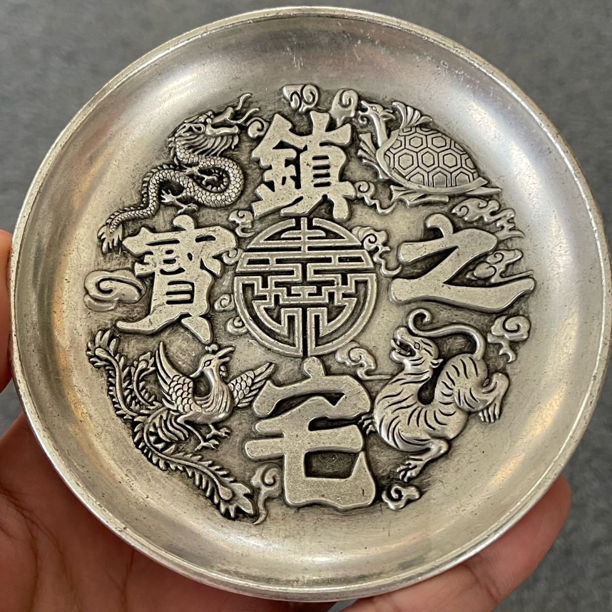 - 極美品 彫刻 真鍮製 純銅 鎮宅之宝 手作り 銅鍍銀 工芸品 鑑賞 置物 仏具 観賞 ZH853
