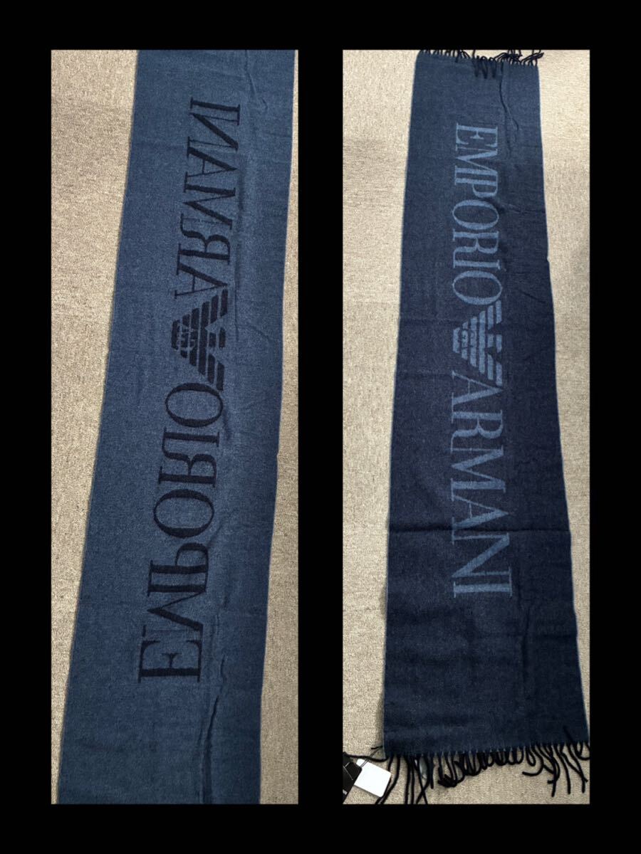 - 【新品未使用】EMPORIO ARMANI マフラー 箱・タグ付き 青・水色