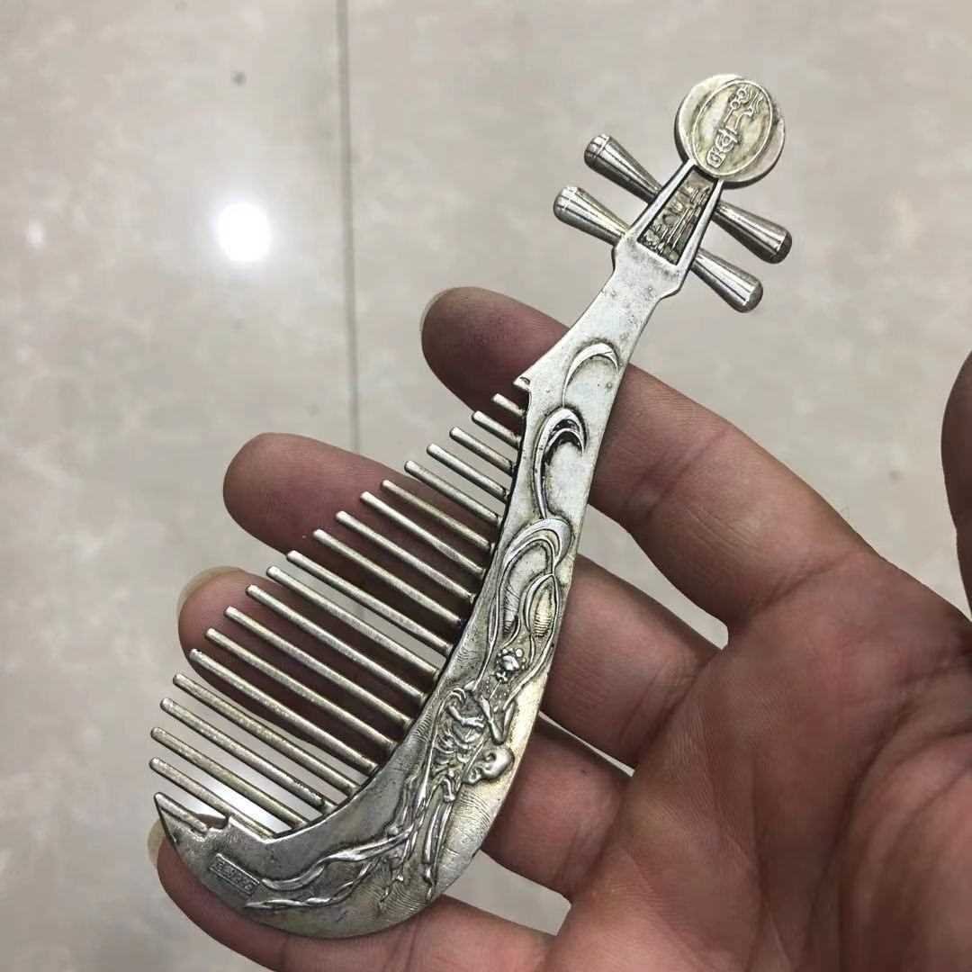 - 極美品 彫刻 真鍮製 純銅 くし 櫛 琵琶 手作り 銅鍍銀 工芸品 鑑賞 置物 仏具 観賞 ZH855