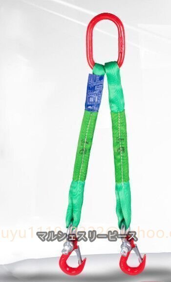 - 品質保証 2本吊り ベルトスリング スリングベルト 作業用 荷吊り 合金鋼製フック付き リング付き ポリエステル製 2m 耐荷重3t