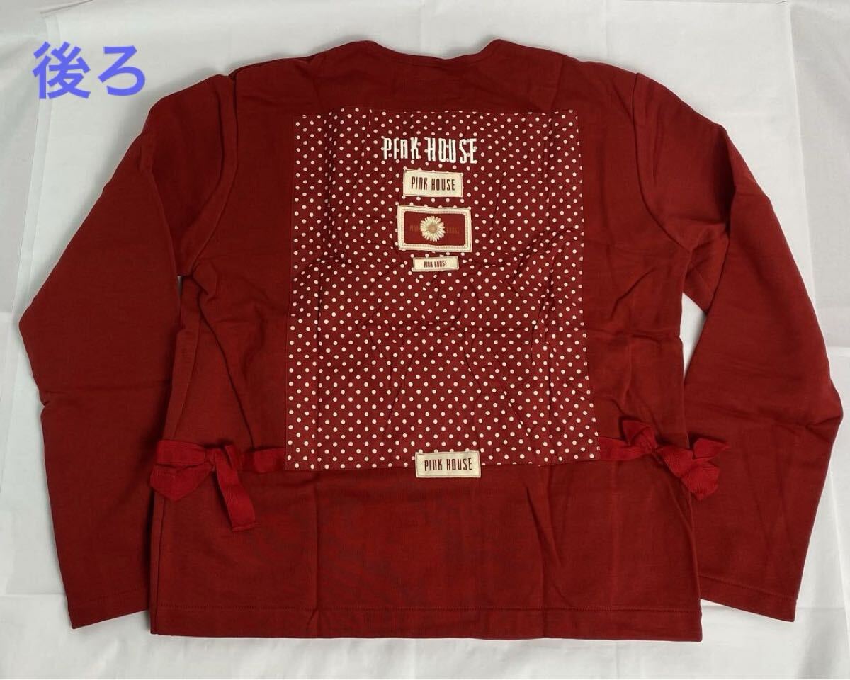 - 未使用】PINK HOUSE/ピンクハウス リボン付き スウェット カーディガン レッド 送料無料 綿100% 後ろが可愛い