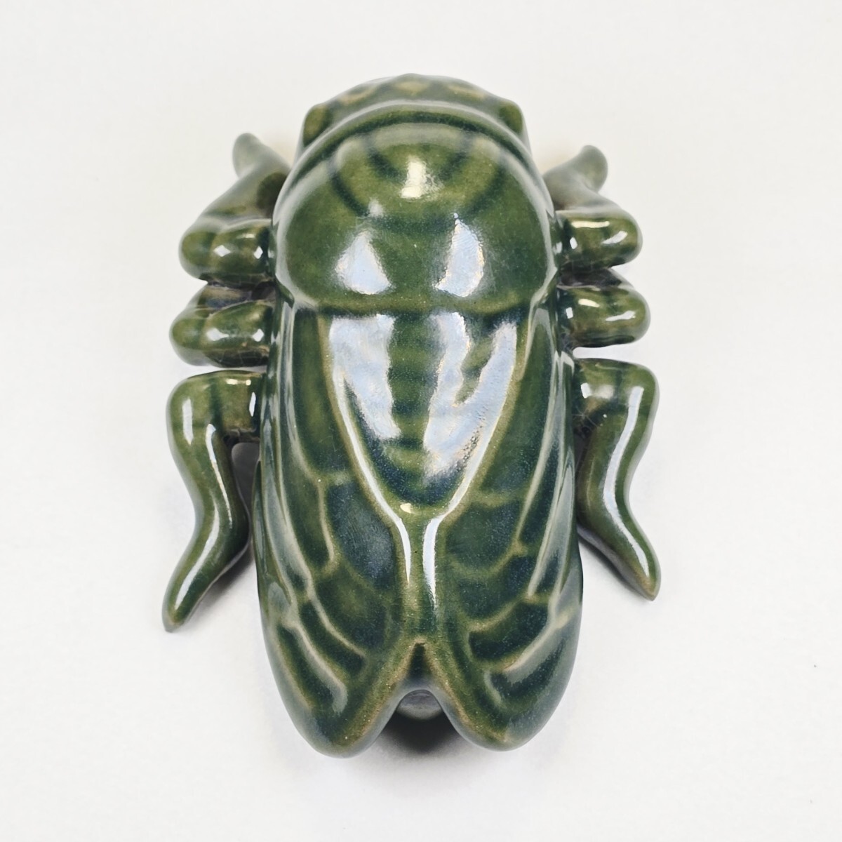 - 古美術 中国古磁 古越窯 秘色青磁 手彫 セミ 大型置物 風水開運観賞物 美品