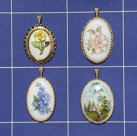 - ◎英独名窯 Coalportなど 綺麗な磁器ペンダント 4点セット◎e02