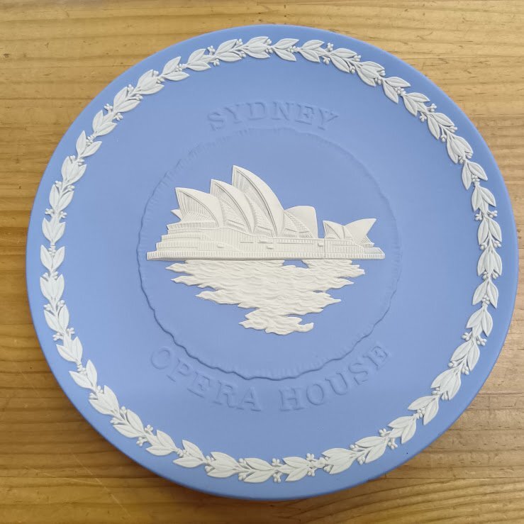 > ウェッジウッド☆ジャスパー シドニー オペラハウス プレート 20.5cm 飾り皿 WEDGWOOD ペールブルー 英国製 ヴィンテージ