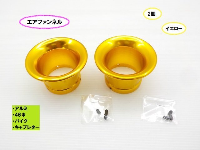- TH59★☆アルミエアファンネル(46Φ)(バイク キャブレター)2個セット イエロー(CB400ST バリオス SR400 250TR DAX エイプ)