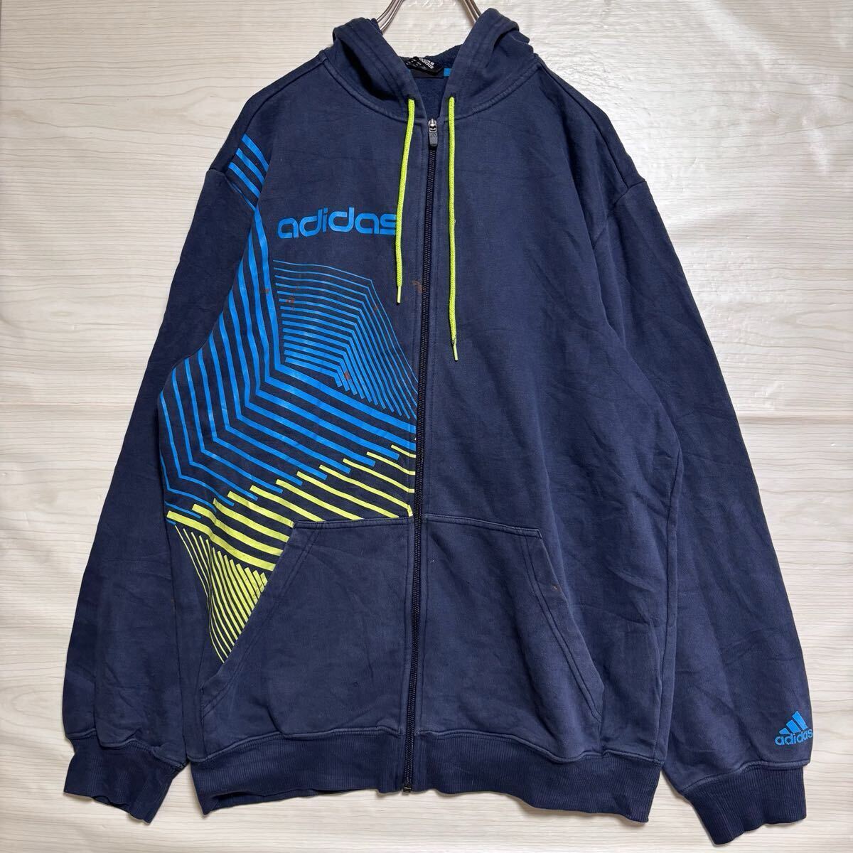 > adidas アディダス ジップパーカー ジップアップ スウェット フーディー サイズM ネイビー 紺色 コットン メンズ トップス(45)