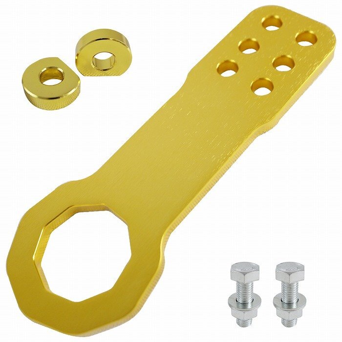 > 『フロント用』汎用 牽引フック 金/ゴールド アルミ製 レーシング トーフック ドリフト サーキット フック 厚み10mm 頑丈!