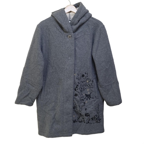 > スカラー ScoLar サイズM - ダークグレー×黒×ゴールド レディース 長袖/刺繍/スター(星)/ネコ/フラワー(花)/ショート丈/秋/冬 美品