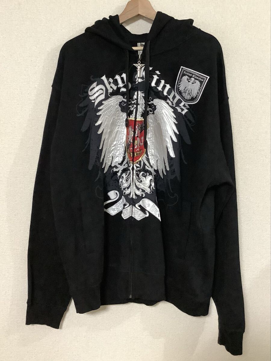 - AVIREX アビレックス ワッペン ビックシルエット フルジップスウェットパーカー ブラック カジュアル アメカジ ストリート