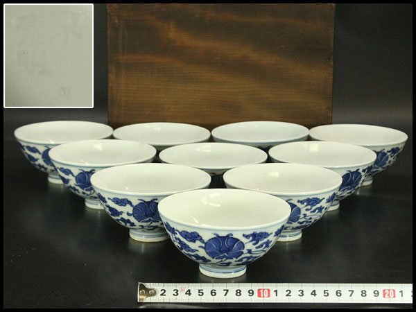 - 【銀閣】青花 纏枝蓮花紋 碗 十客 時代物 旧家蔵出 送料無料(A743)