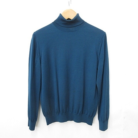 > エディフィス EDIFICE ニット セーター 長袖 タートルネック ハイゲージ ウール 青 ブルー M メンズ