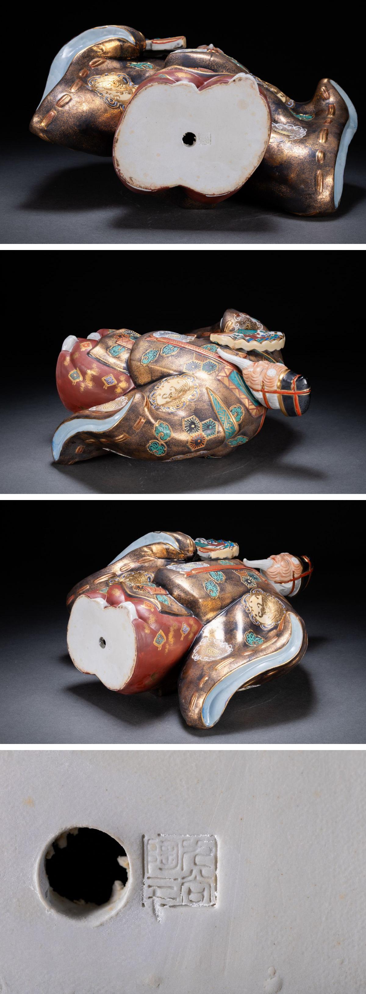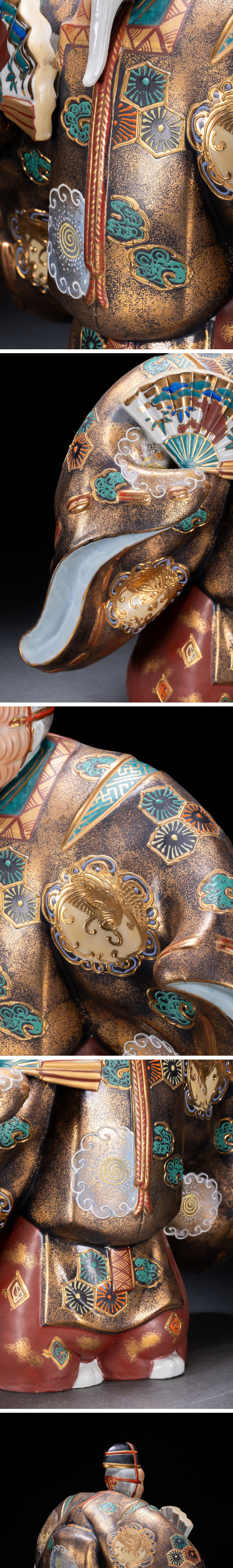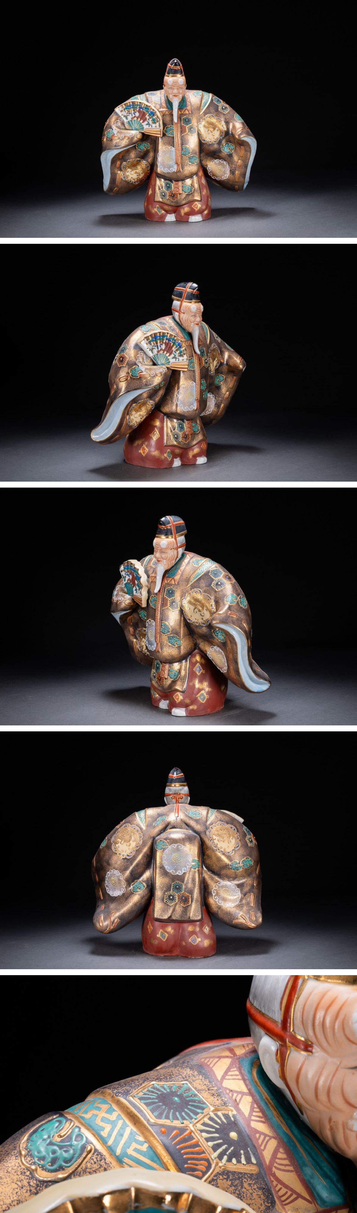 > 【珍品堂】某有名オークション購入 時代物 九谷焼 陶三造 金襴手 巨大翁置物 古置物 古擺件 古美術 時代コレクション