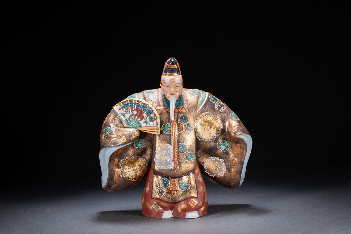 - 【珍品堂】某有名オークション購入 時代物 九谷焼 陶三造 金襴手 巨大翁置物 古置物 古擺件 古美術 時代コレクション