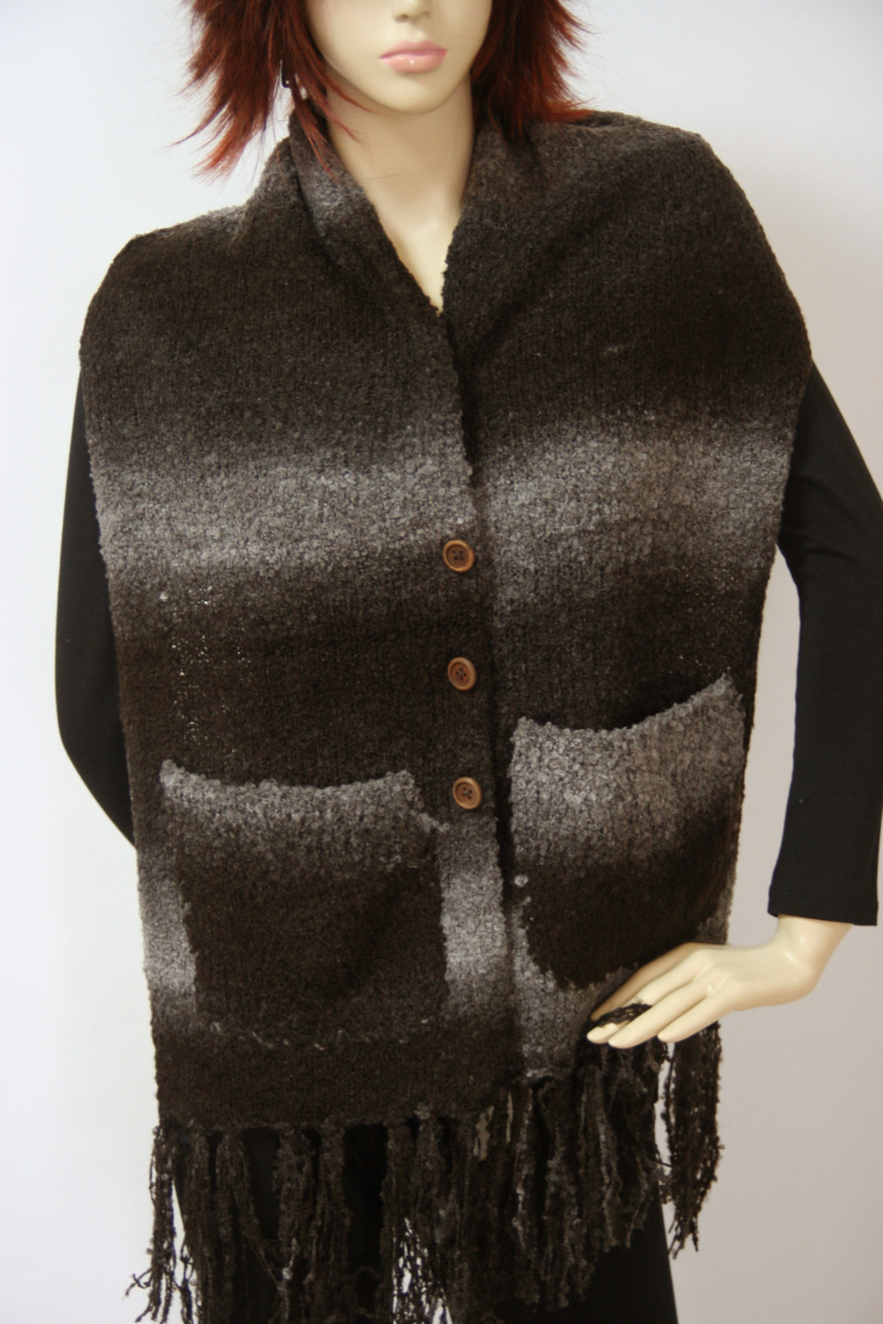 - 送料無料◆超お得◆2枚組◆2WAYタイプ◆マフラー&カーディガン風◆ボタン留め◆ポケット付き◆手編み◆グラデーションマフラー(ブラウン)