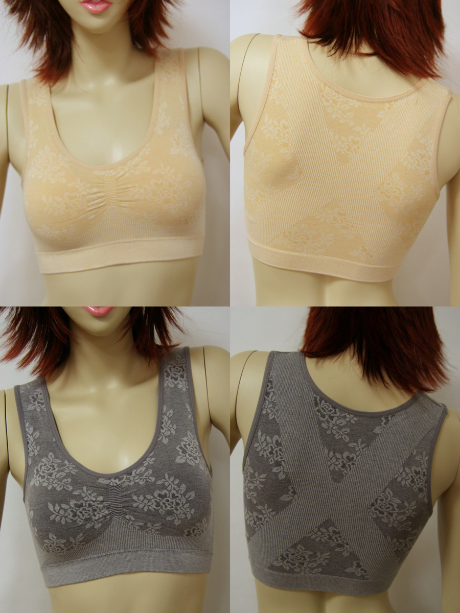 - 送料無料◆2色組◆ゆったり補整◆美ラインバスト◆綿混素材◆ローズジャガード◆モールドカップ◆楽ちんソフトブラ(M~L/ベージュ&グレー)