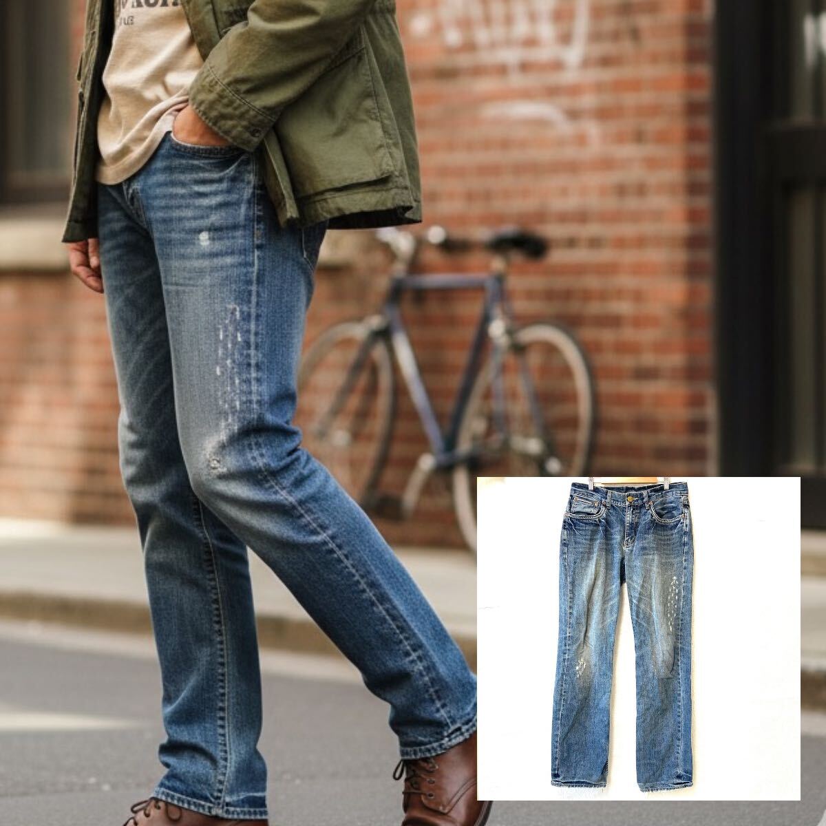 - 程よいダメージ加工◎【TK TAKEO KIKUCHI】ティーケー タケオキクチ デニム パンツ ジーンズ ジーパン インディゴ サイズ4/Y38137UU
