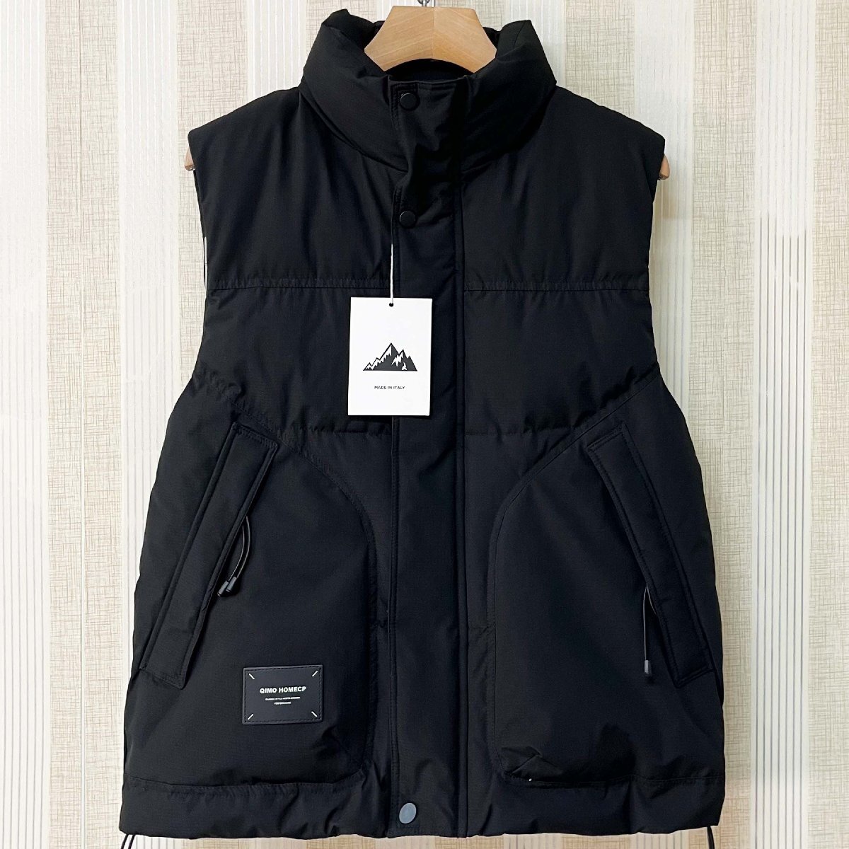 > ダウンベスト イタリア製造 ダックダウン90% ソフト シンプル 無地 袖なし アウター ダウンジャケット トップス カジュアル 秋冬 SIZE:L