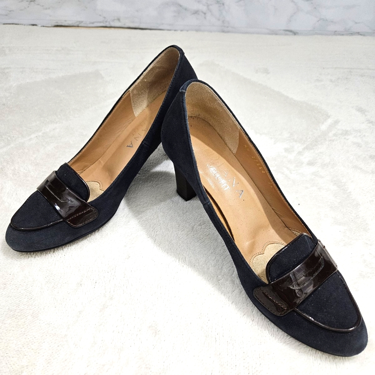 - DIANA ダイアナ ヒール スエード パンプス ネイビー サイズ22.5cm かかとすり減りあります