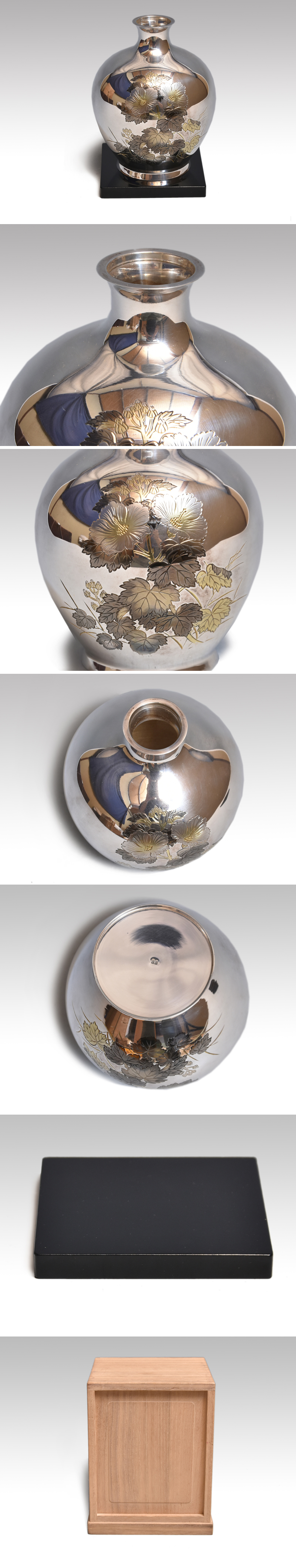 - 銀製 花瓶 小壺 芙容文彫金入り 重量:212g シルバー y2902