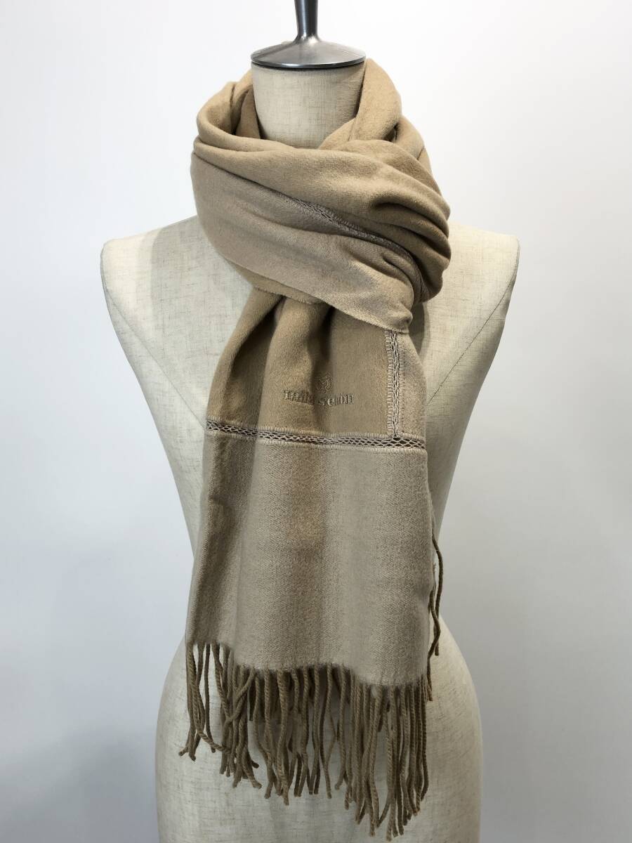 > mila schon カシミヤ100% フリンジ付き マフラー 大判 ショール ロゴ刺繍 ブラウン ミラ・ショーン■1120C