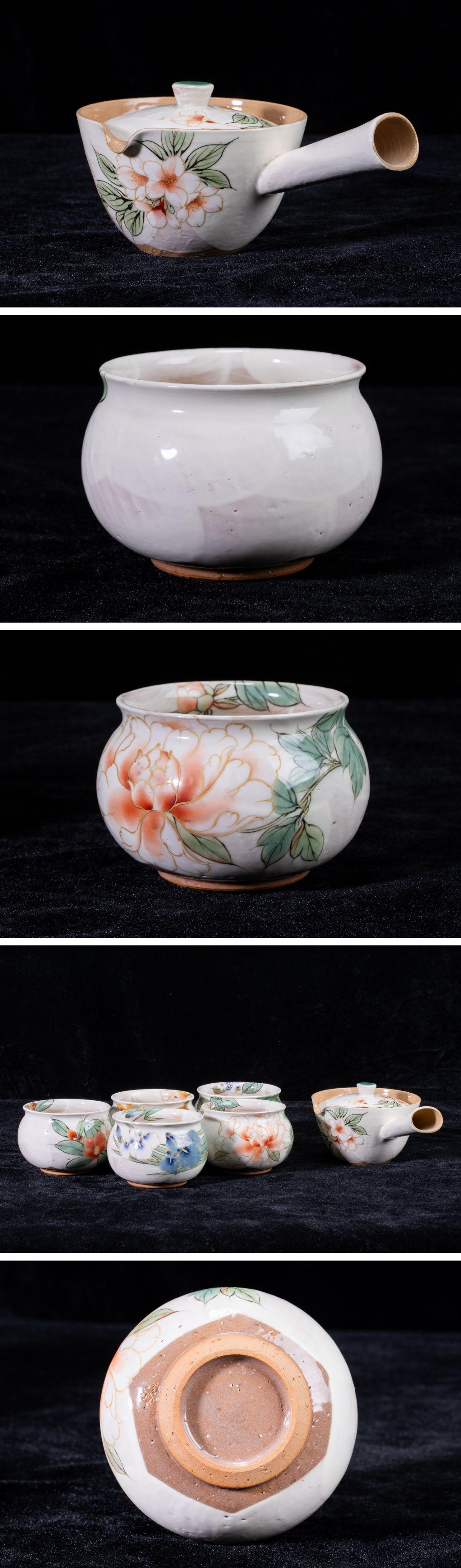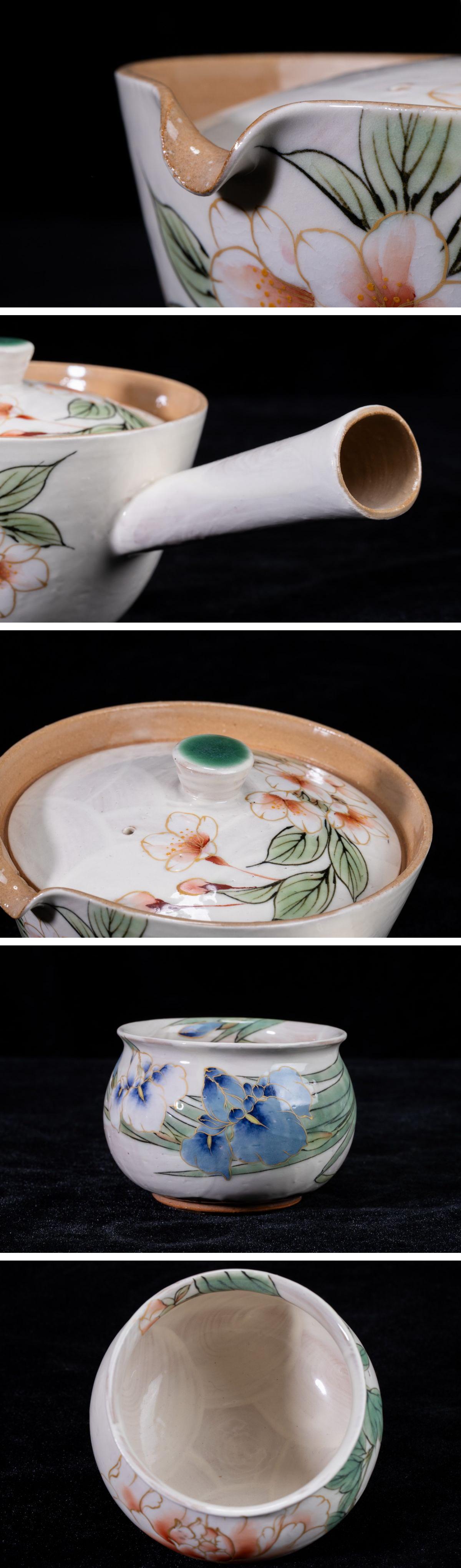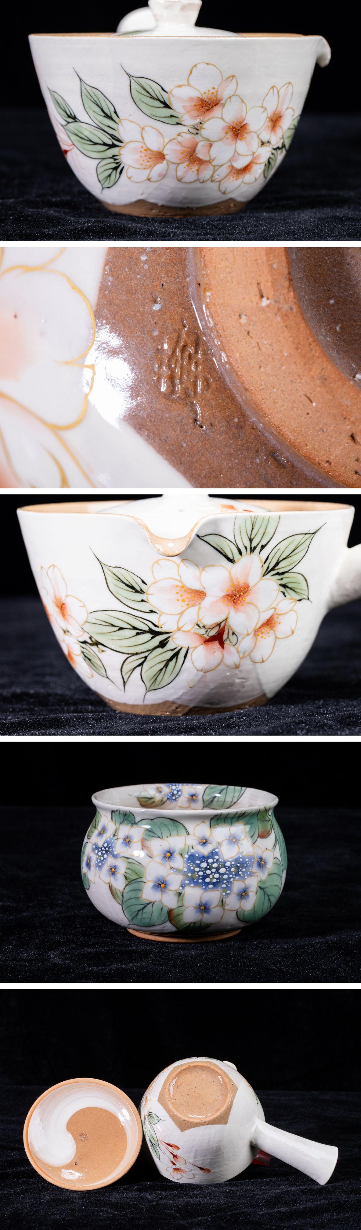 - 【珍品堂】1円から N14-V6 京焼 清水焼 陶あん 花絵 繊細絵付 急須 湯呑み 茶器 茶道具 和食器 伝統工芸 時代物 骨董品 古美術 希少