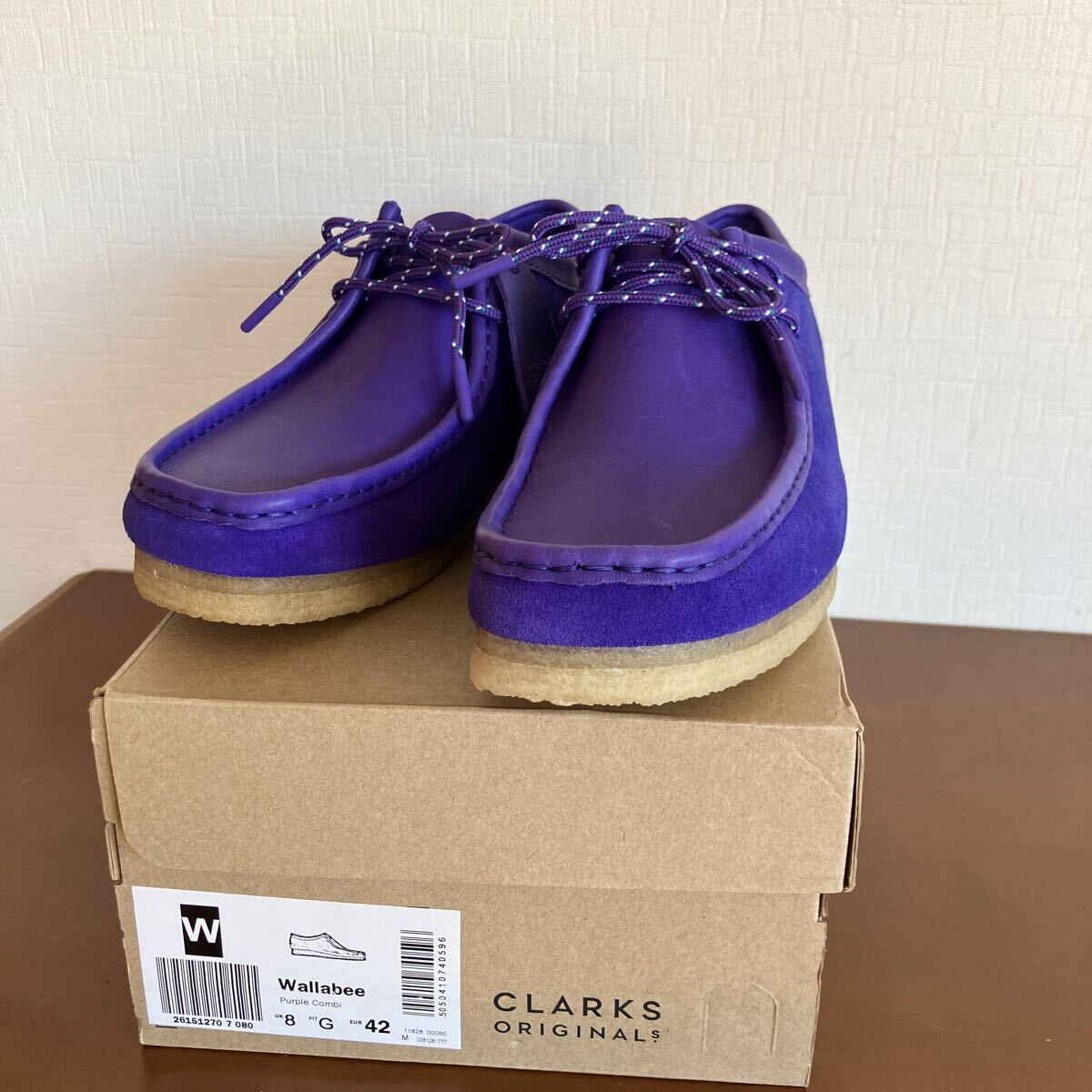 - 未使用品 CLARKS WALLABEE PURPLE COMBI 42 UK8 US9 クラークス ワラビー パープル コンビ クレープソール fitting G 外箱付
