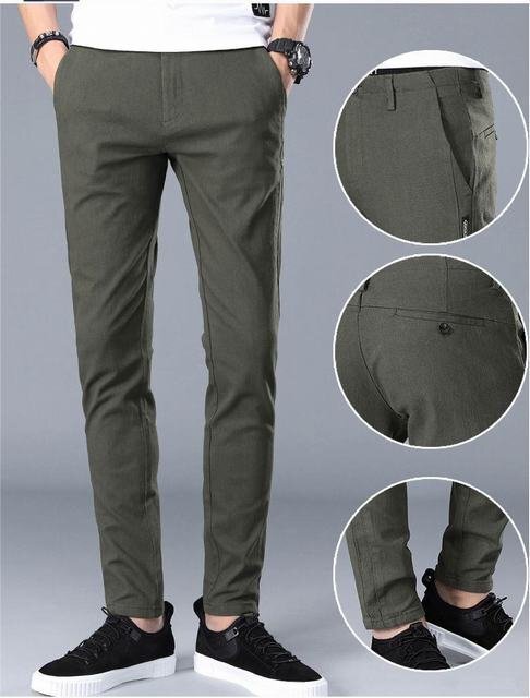 - 春夏 薄手 トレンド メンズチノパンツ アイスシルク レギンスアイスシルク カジュアルパンツ 紳士 ダークグリーン サイズ36