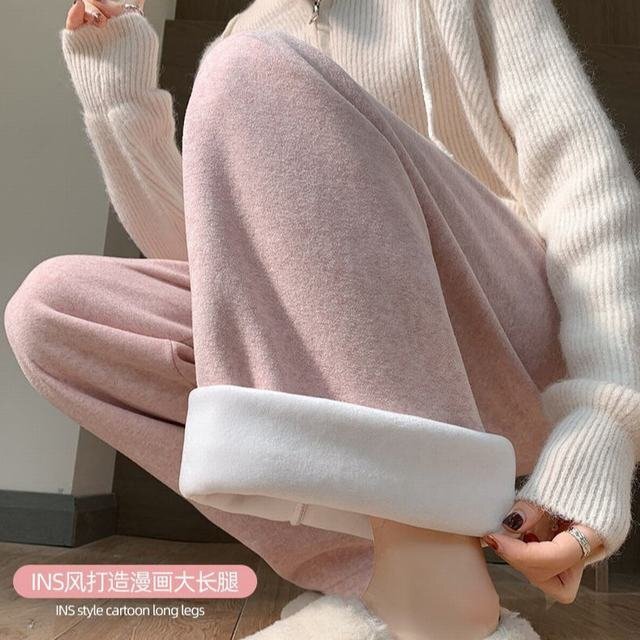- パンツ レディース 裏起毛 ワイドパンツ ストリート スウェット 無地 シンプル ルームウェア あったかい 防寒 ピンク