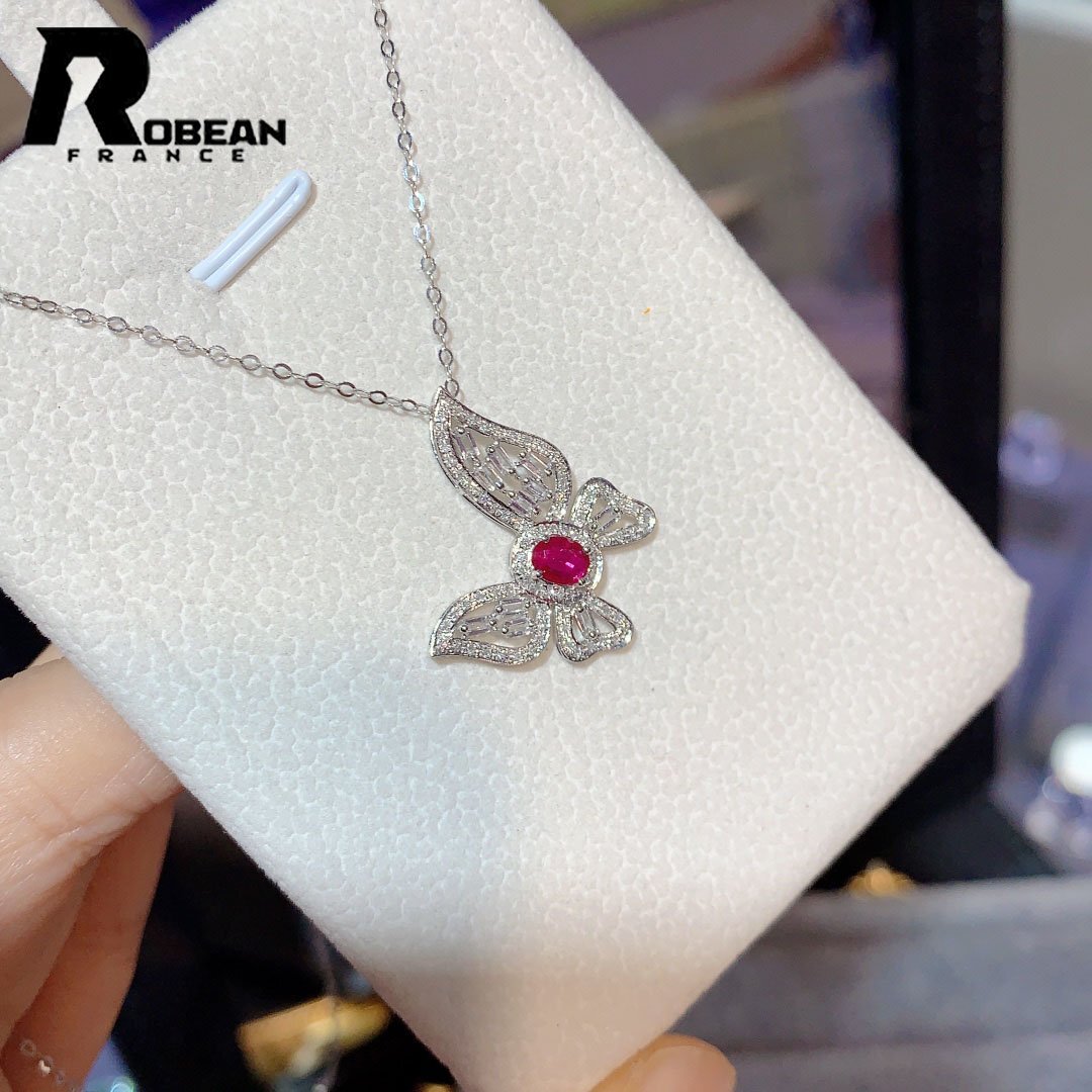 - レアEU製 定価145万円★ROBEAN・ルビー・ダイヤモンド・ネックレス★ホワイトサファイア パワーストーン 天然石 勝利の石 K18(18金)71401