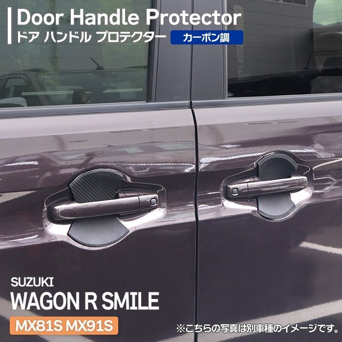 - MX81S MX91S ワゴンRスマイル 専用設計 ゴム製 ドア ハンドル プロテクター サイド 1台分 4枚セット ラバー カーボン調 傷防止 スズキ