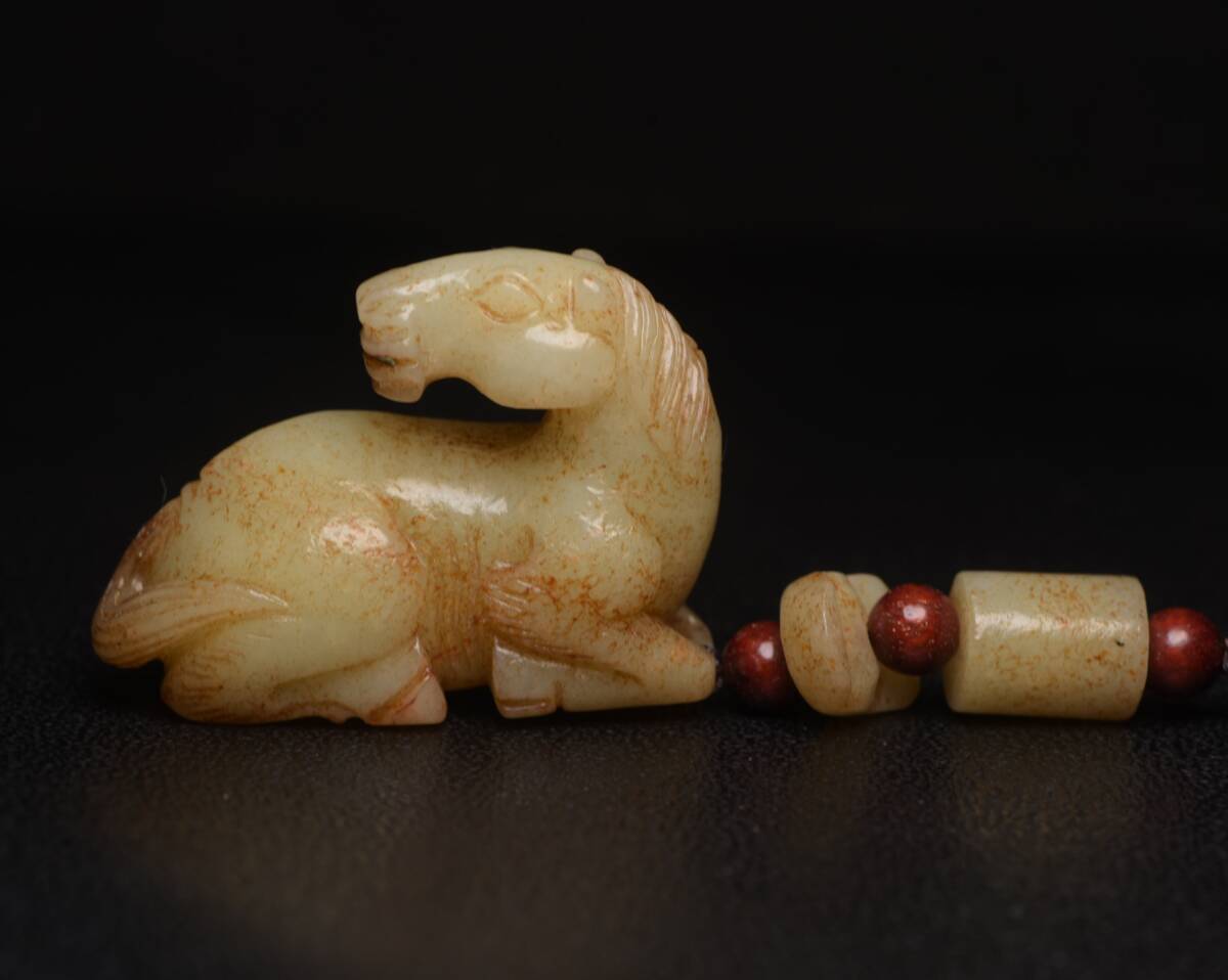 - 旧蔵 和田玉彫 馬 根付 中国古玩 骨董品 時代物 稀少唐物