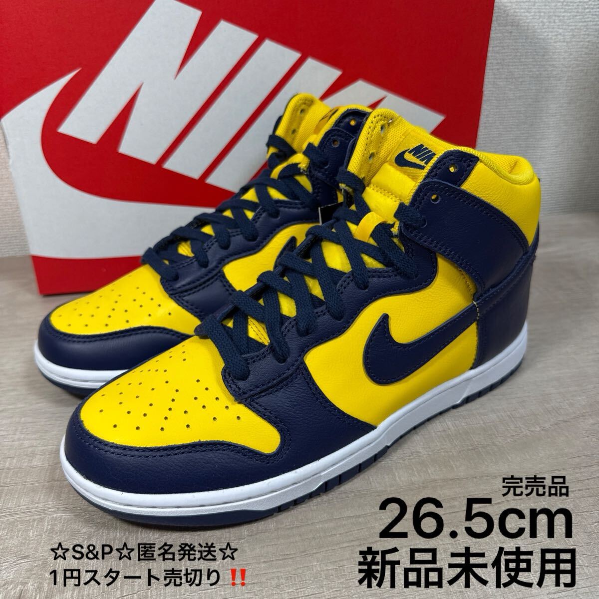 > 1円スタート売切り 新品未使用 26.5cm 完売品 NIKE DUNK HIGH RETRO SE ナイキ ダンク ハイ レトロ バーシティメイズ ミッドナイトネイビー