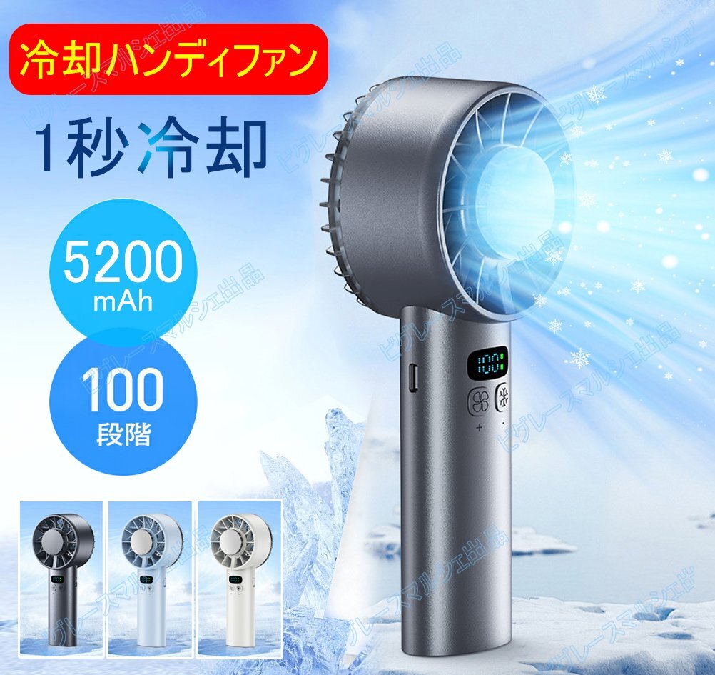 - 携帯扇風機 -25℃瞬間冷却 5200mAh大容量 12枚羽根 100段階暴風 冷却プレート 手持ち扇風機 首掛け扇風機 扇風機 卓上 USB 充電式 hw1253.2