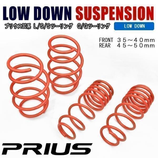 - ZVW30系 プリウス ローダウン サス フロント 35mm~40mm リア 45mm~50mm スプリング ダウンサス 1台分 トヨタ