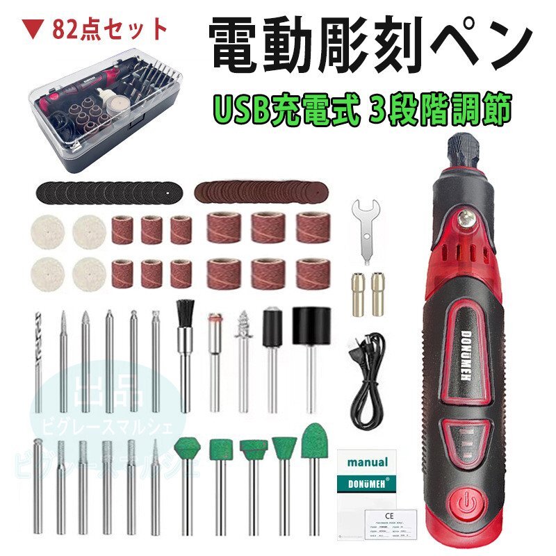- 彫刻ペン 電動 コードレス ミニ研削ペン ポータブル 17000RPM高速回転 3段変速 USB充電式 軽量 電動彫刻ペンキット 82点セット hw1419.2