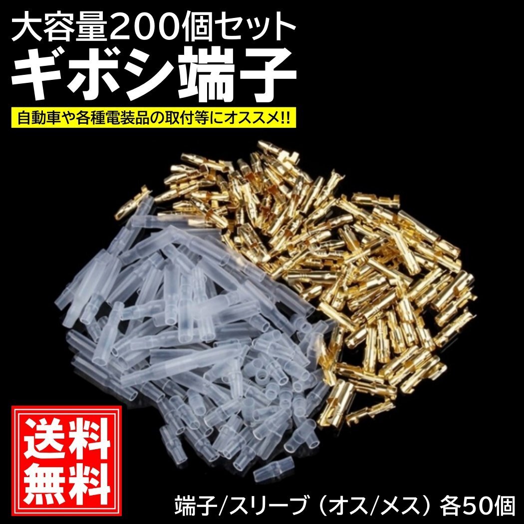 > ギボシ 端子 丸型 200個 セット スリーブ 絶縁 電工 圧着 端子 車 バイク 配線 DIY 加工 オス メス 配線接続 サイズ