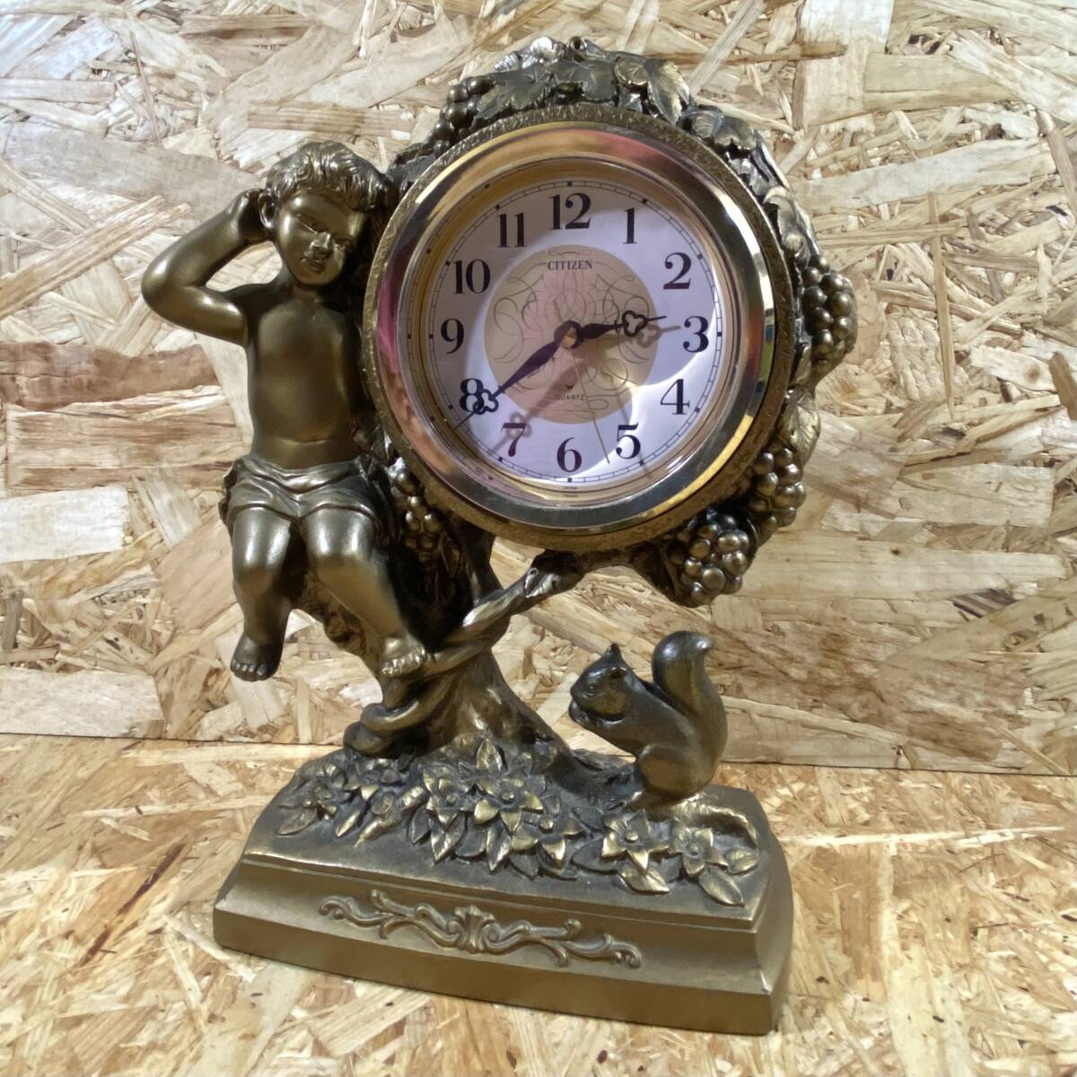 - CITIZEN 置時計 天使とリスのブロンズ調 オブジェ時計 高さ24cm