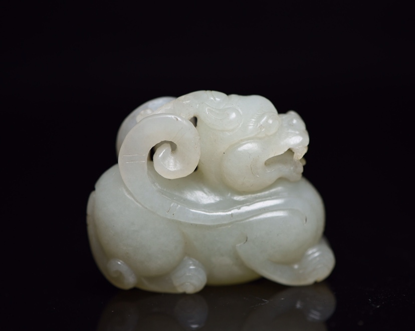 - 旧蔵 和田玉彫 神獸 手把件 根付 中国古玩 骨董品 時代物 稀少唐物