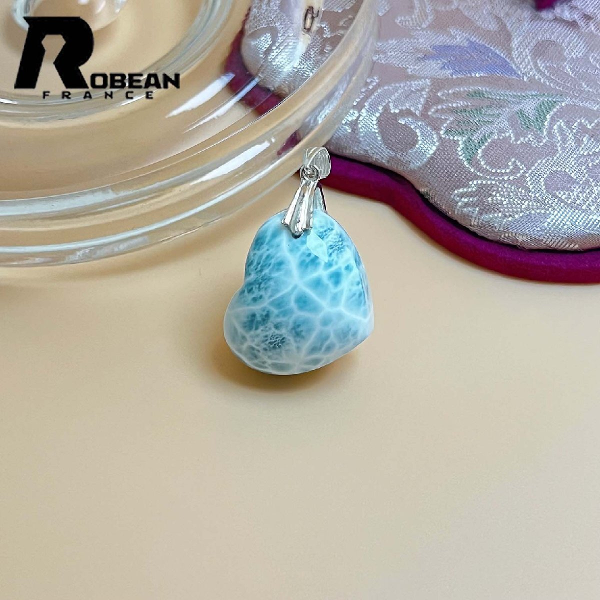 - 夢色 EU製 定価11万円★ROBEAN・ラリマーペンダント★パワーストーン アクセサリー 天然石 高級 綺麗 お守り 約19.3*23.2*11.8mm ML815508
