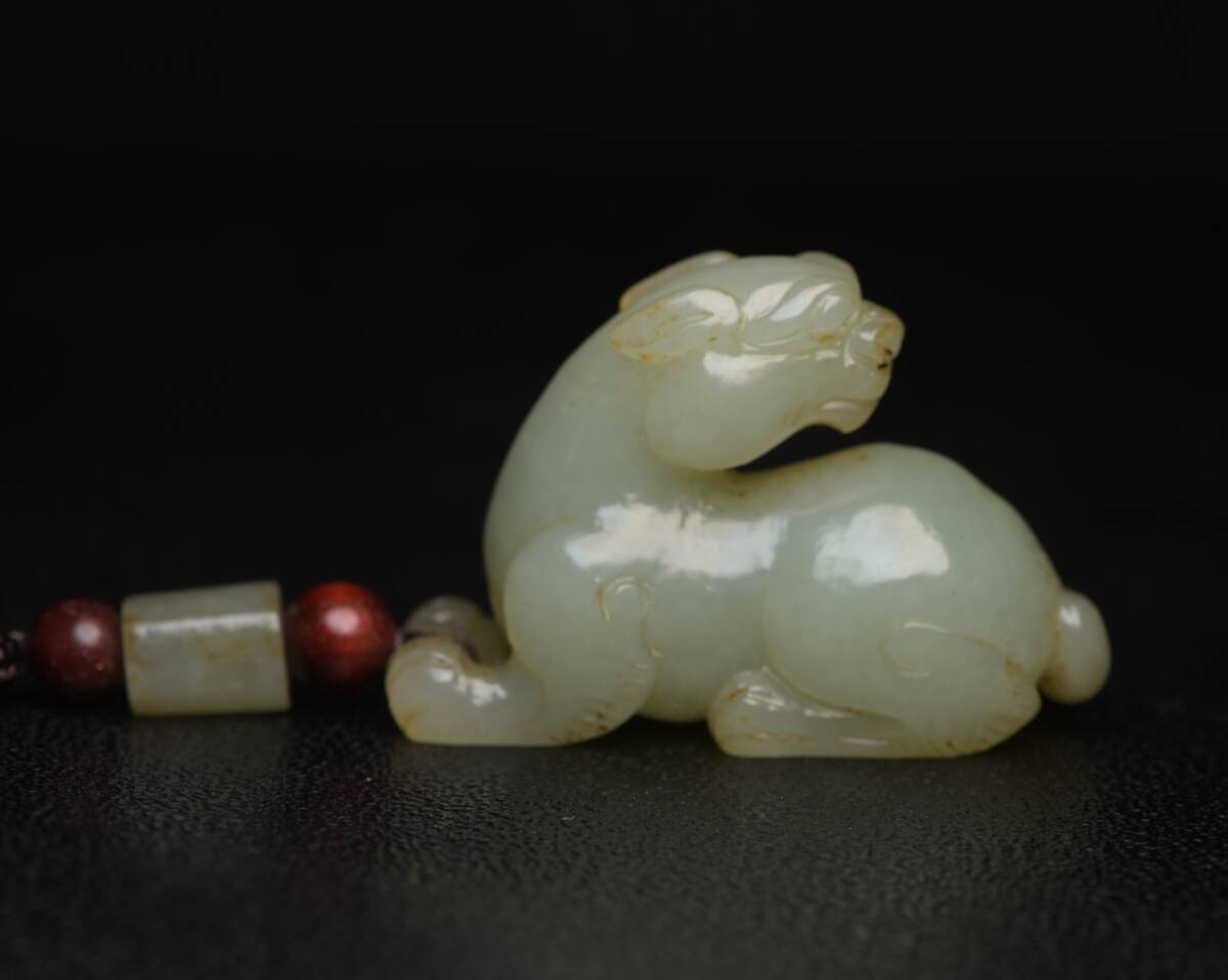 - 旧蔵 和田玉彫 神獸 根付 中国古玩 骨董品 時代物 稀少唐物