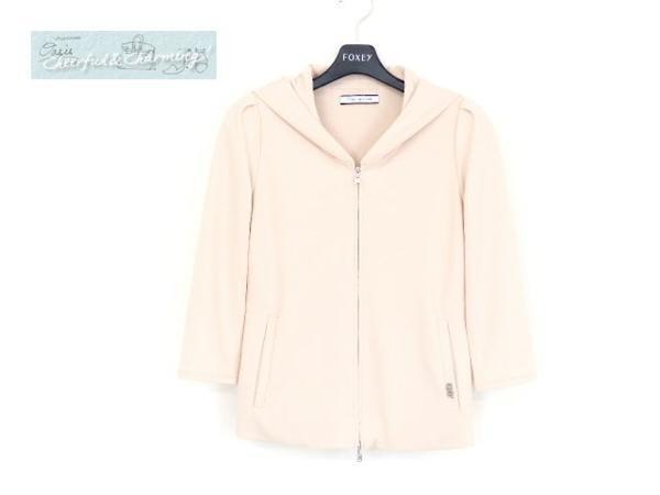 - FOXEY NEWYORK するするパーカ 40 ピーチベージュ マットストレッチジャージ ロゴプレート付 33706