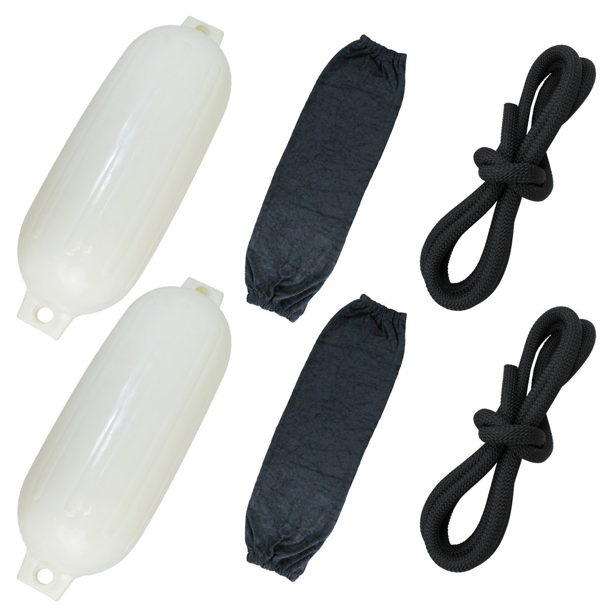 - 『3種×2セット』ボートフェンダー 580×190mm&黒カバー&ロープ 黒 2m 船 浮き ブイ フロート 係留ロープ