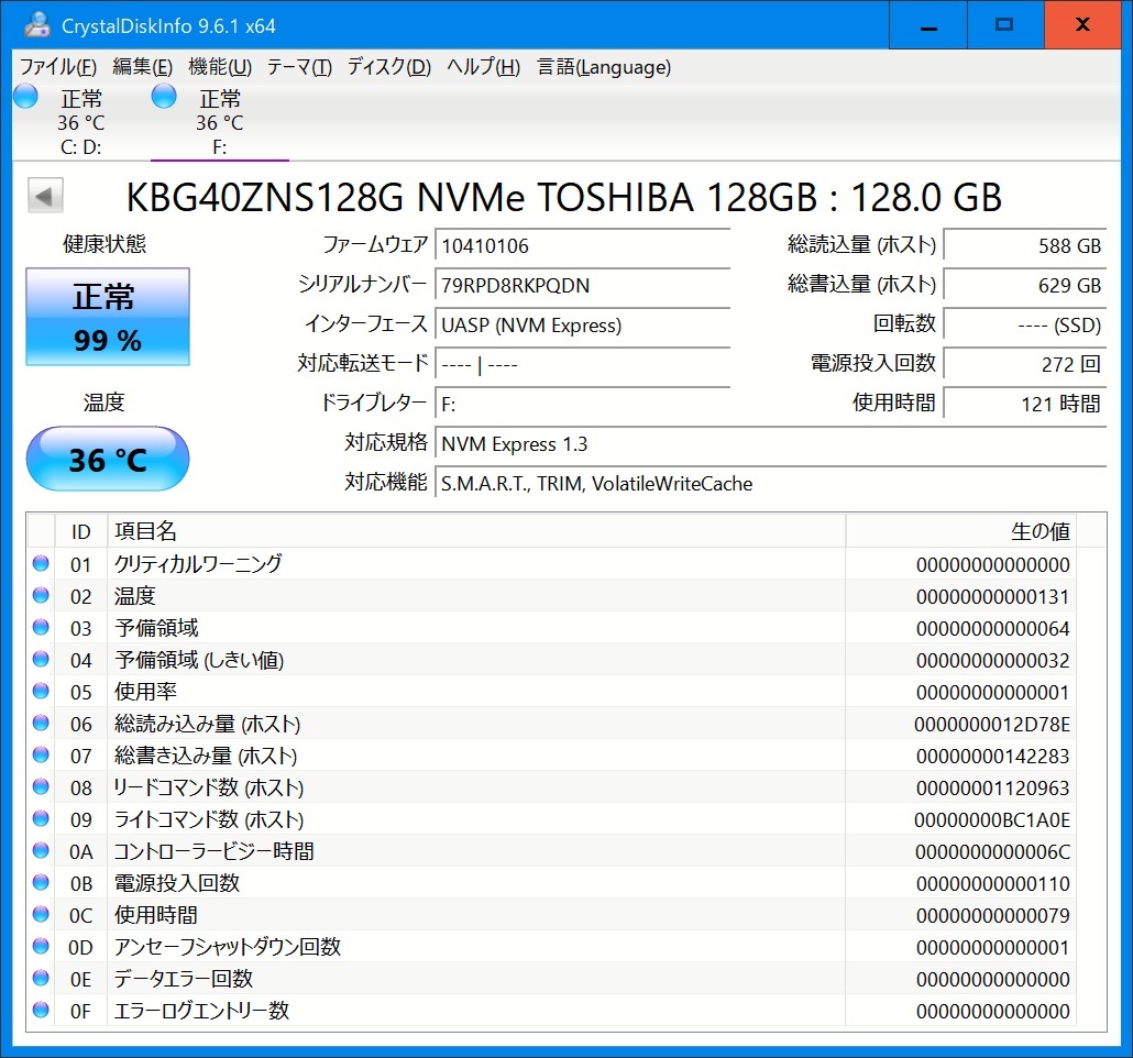 - 【送料無料】SSD 128GB M.2 NVMe CrystalDiskInfo正常確認 (5030103