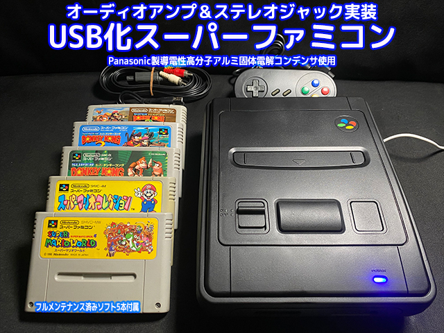 - [1円スタート] Nintendo Super Famicom カスタム スーパーファミコン 本体 (USB-C, オーディオアンプ、OS-CON) +ソフト5本 [F221]
