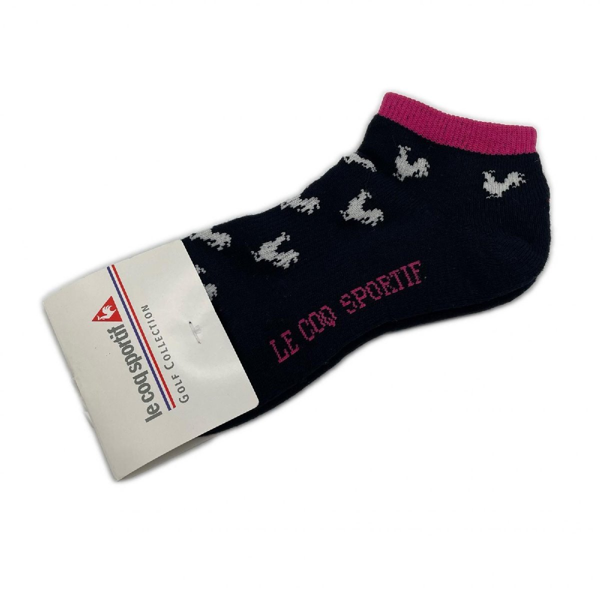 > coco 未使用品 ルコックスポルティフ le coq sportif ソックス 22~24cm ブラック×ピンク アンクル丈 ロゴ ネコポス発送可 K022882